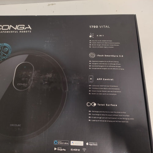 Ecost Customer Return, Cecotec Conga 1790 Vital. iTech SmartGyro Technology, 2100 Pa, App with Card, Tidy Cleaning, Brush for Pet Hair, Alexa & Google Assistant